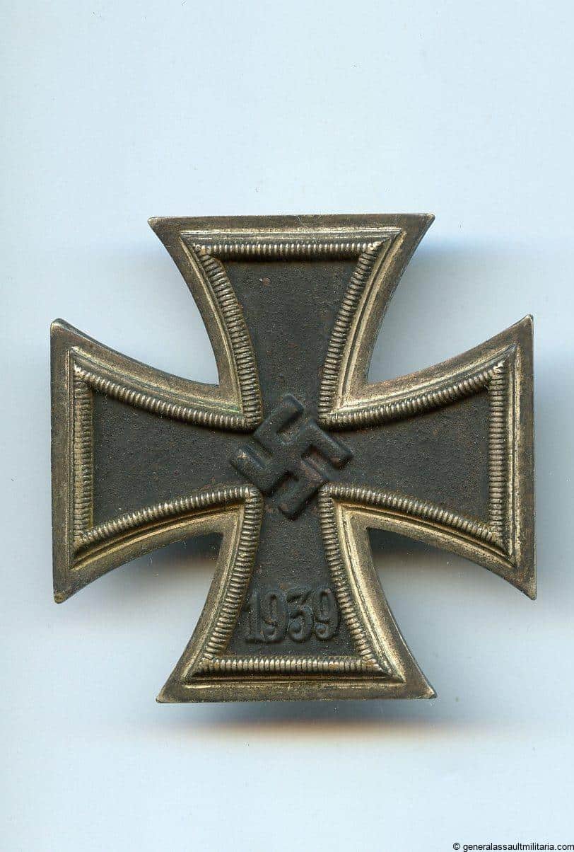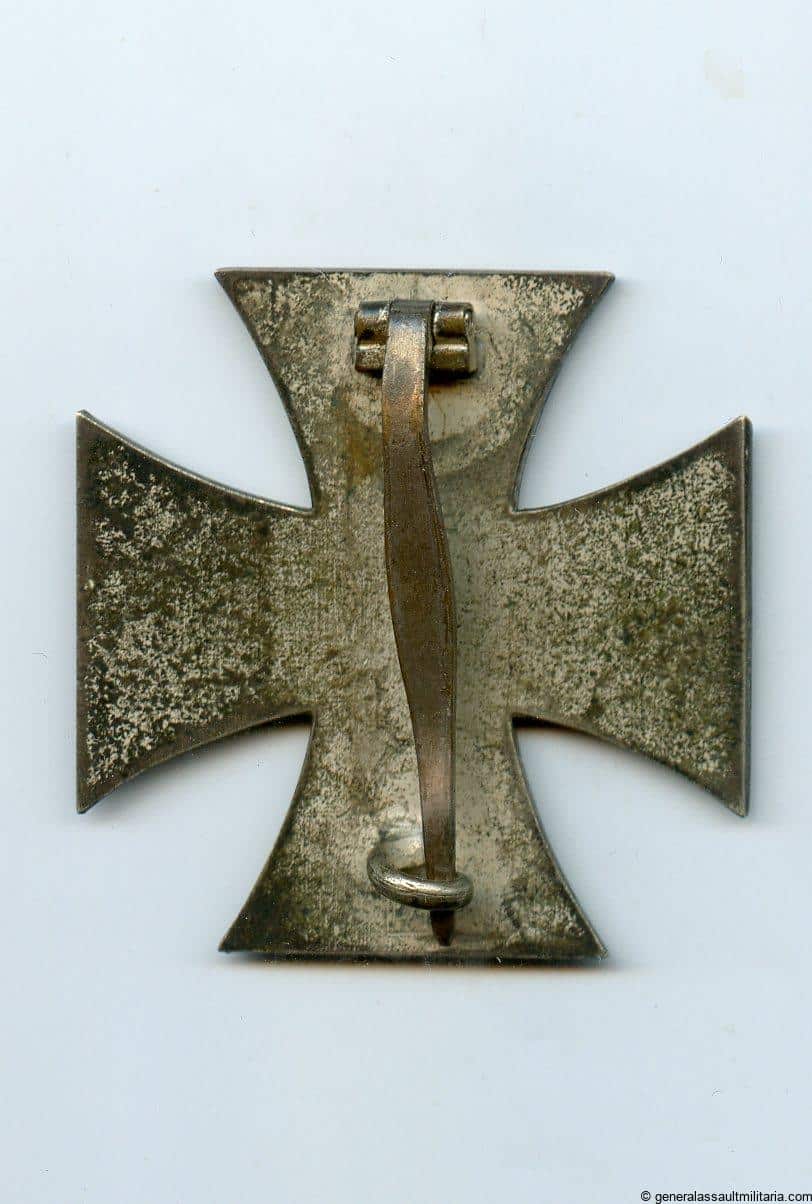 Iron cross first class – L/11 Wilhelm Deumer, Lüdenscheid. Three piece construction Ek1 with Deumer frame and core. Maker marked L/11 under the cash and still shows a good part of the original frosting on the frame. The black lacquer in the core is near perfect and the cross shows a light patina and wear. Good looking Deumer marked Ek1.