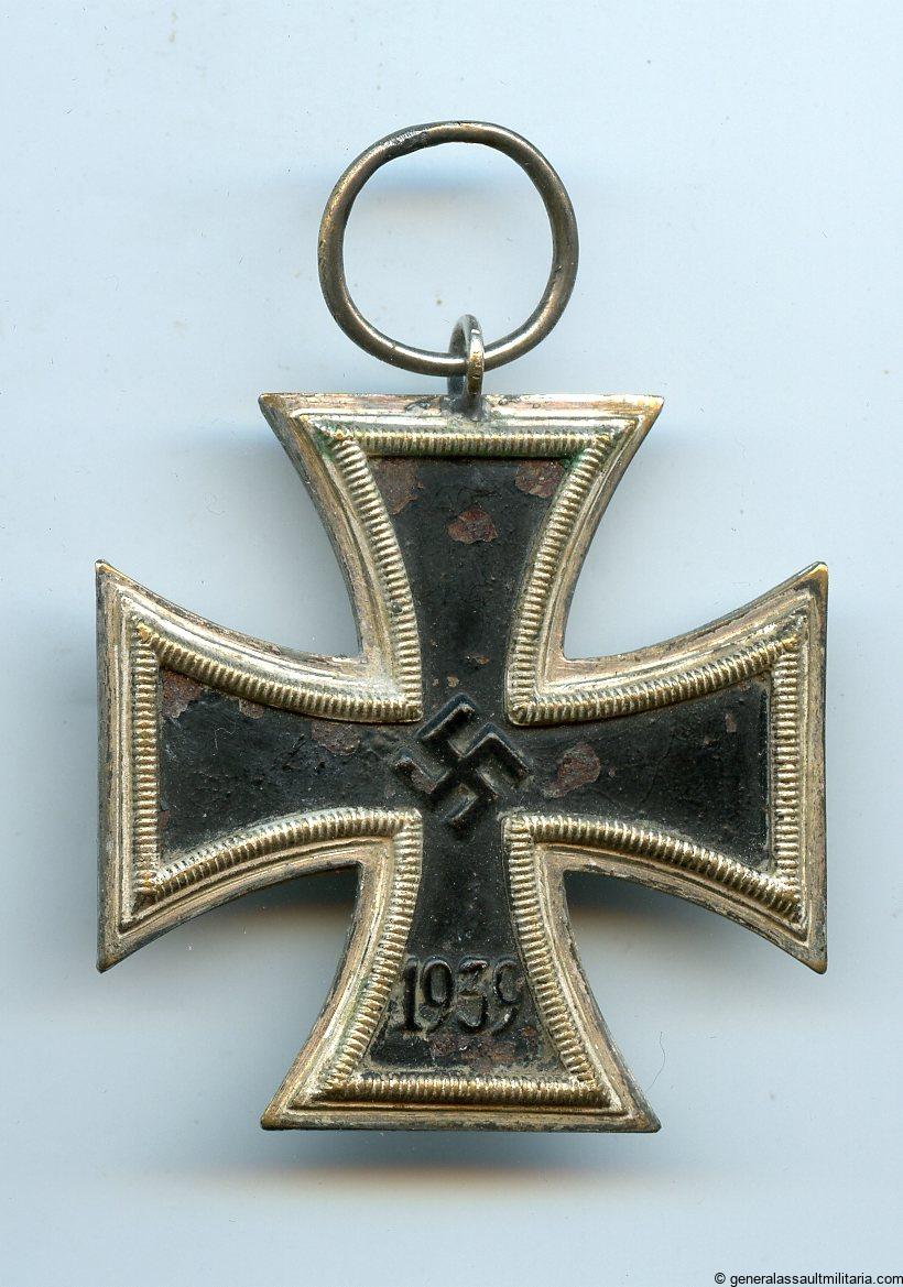 Iron cross second class – Straight 9 variant. Very early three piece construction Ek2 1939 with tombac frame and iron core. Remains in average condition with the frame still nicely frosted and some of the paint missing on the core with rust underneath. Very difficult to find variant with straight 9 core and priced lower due to its condition.