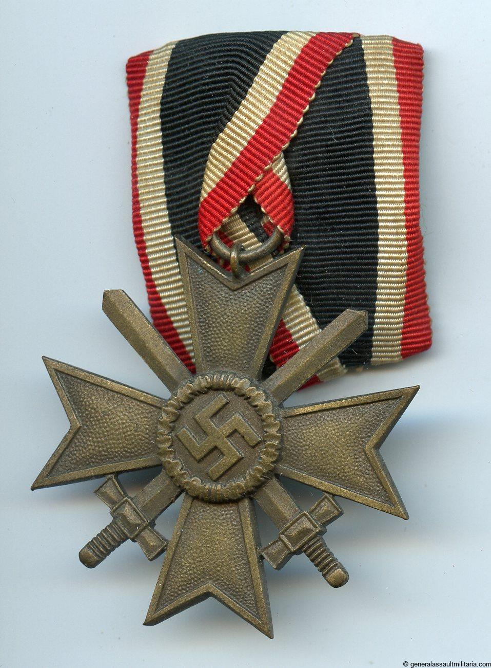 War merit with swords 2nd class cross single mounted. Single mounted KVk2 with swords taken from a larger medal bar. Remains in very good condition with all bronze finish present and a clean ribbon. Good display piece.