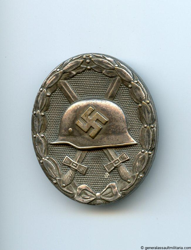 Wound badge in silver – Steinhauer & Lück, Lüdenscheid. Heavy tombak badge with silver plating. The badge remains in nicely worn condition and shows the tombak underneath. Unmarked example but known S&L production. No damage or repairs. Quality early badge.
