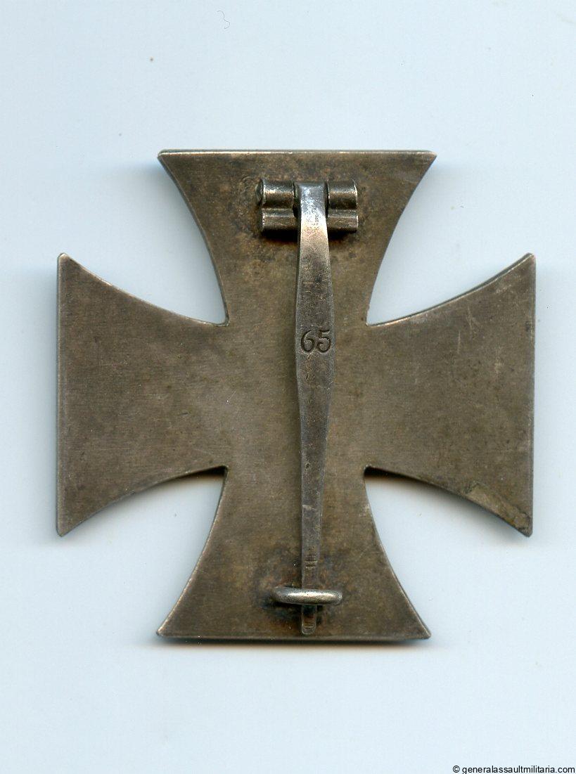 Iron cross first class – MM65 Klein & Quenzer, Idar Oberstein. Good quality heavy three piece construction Ek1 with makers mark 65 on the pin. Remains in fully unworn condition and shows only a very light patina on the frame, which is typical for K&Q crosses. Top example with a fully unworn and untouched appearance.