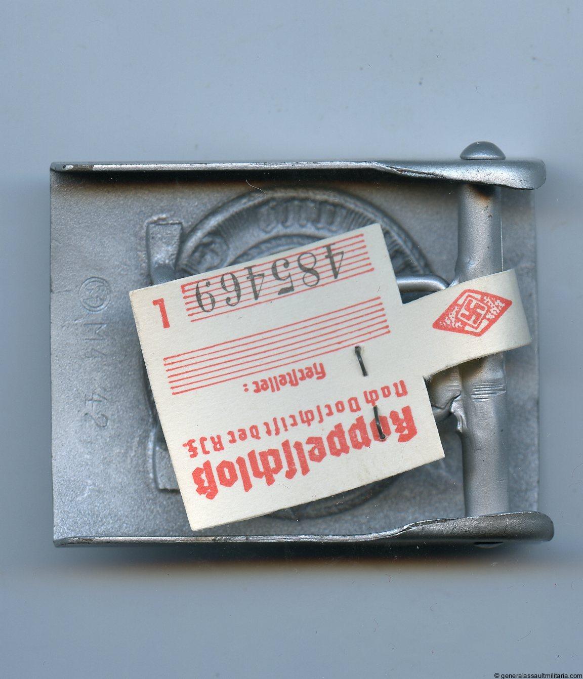 Hitler youth buckle – RZM M4/42 Hermann Aurich, Dresden. Late war steel Hitler youth buckle with thick silver finish and mint RZM tag still attached. Remains in unworn near perfect condition with all paint remaining. Very well preserved example in untouched condition.