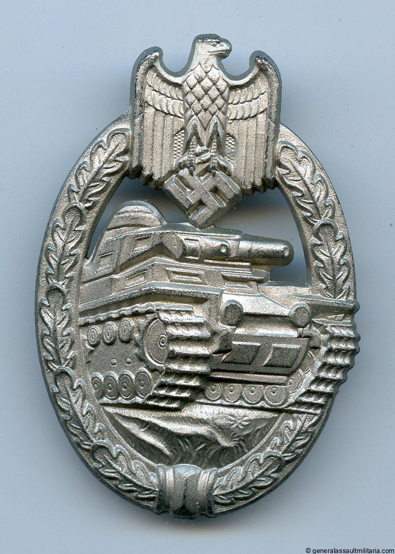 Panzer assault badge in silver – Funke & Brüninghaus, Lüdenscheid. Mid to late war semi hollow zinc PAB with Daisy design linked to F&BL. Remains in the unworn condition and has nearly perfect finish remaining on the front. The differently finished reverse shows a slight patina but retains an equally unworn appearance. One of the best detailed and sharpest designed PAB. Also known as the Daisy 2.