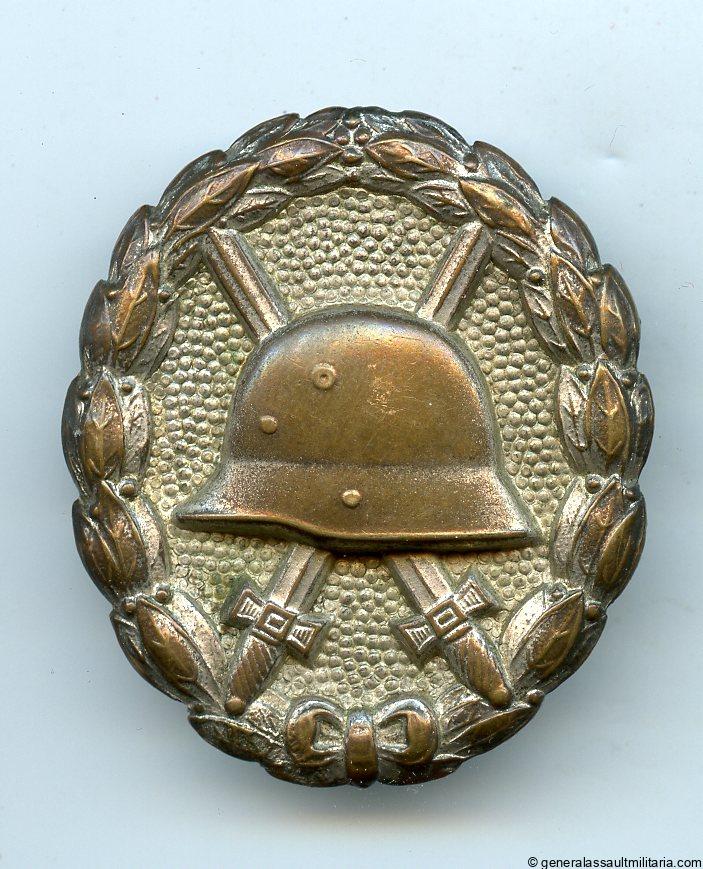 WW1 wound badge in silver – B.H. Mayer, Pforzheim. Steel construction with copper coating and silver plated finish. Remains in well worn condition with the copper coating exposed and a good amount of silver finish worn down. Uncommon example attributed to Mayer.