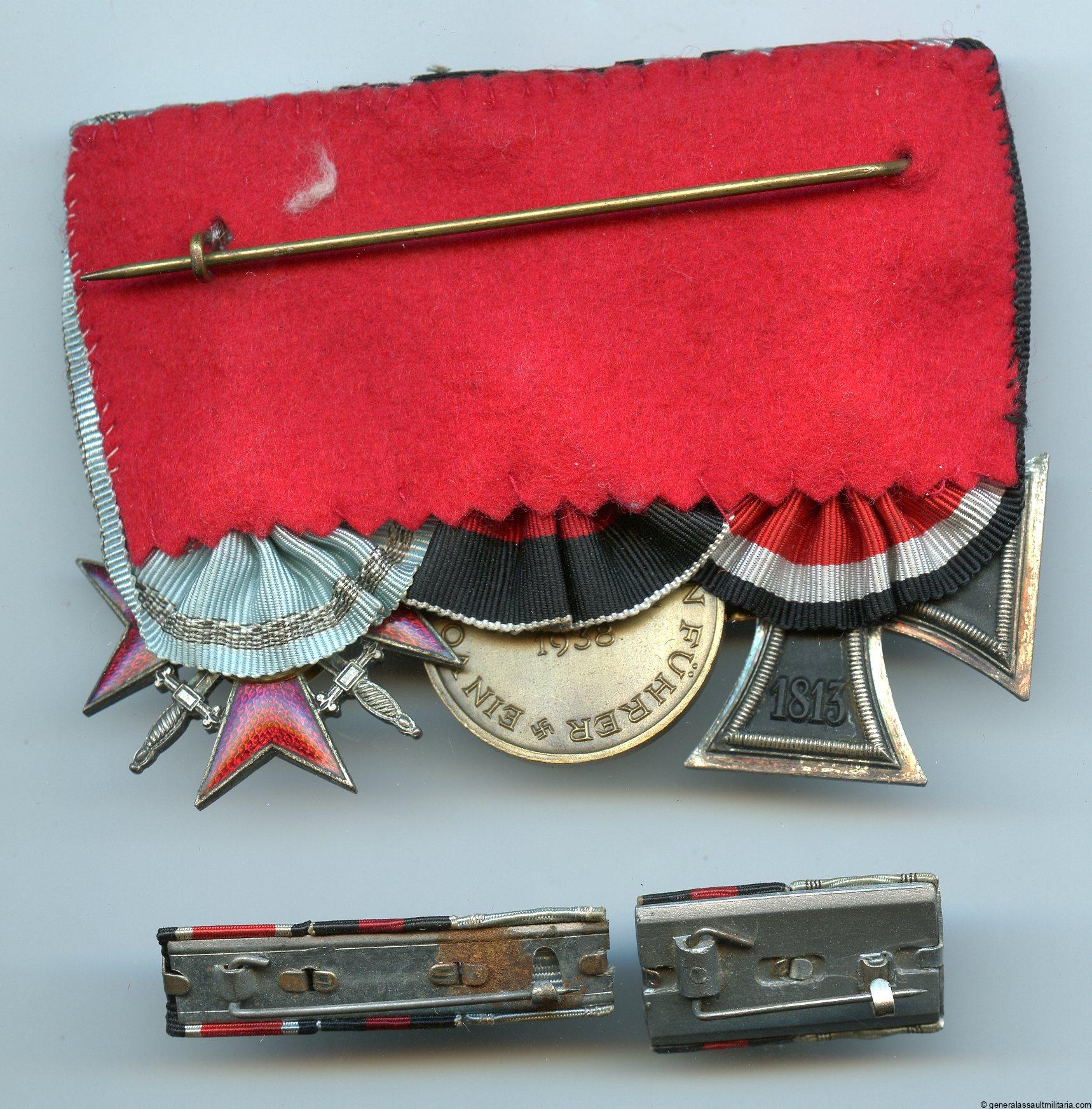 Three piece medal bar with Bulgaria Order of Military Bravery IV class 1941. Very uncommon combination of the Ek2, Sudetenland Anschluss medal with Pragerburg attachement and top quality Enamel inlay 1941 Order of Bravery. Fully German produced and awarded award for soldiers that served in the 1941 Bulgarian campaign, often awarded the the LAH members. With the higher ranking staff having the higher grade pin back versions. All three medals remain in excellent and nearly unworn condition.
