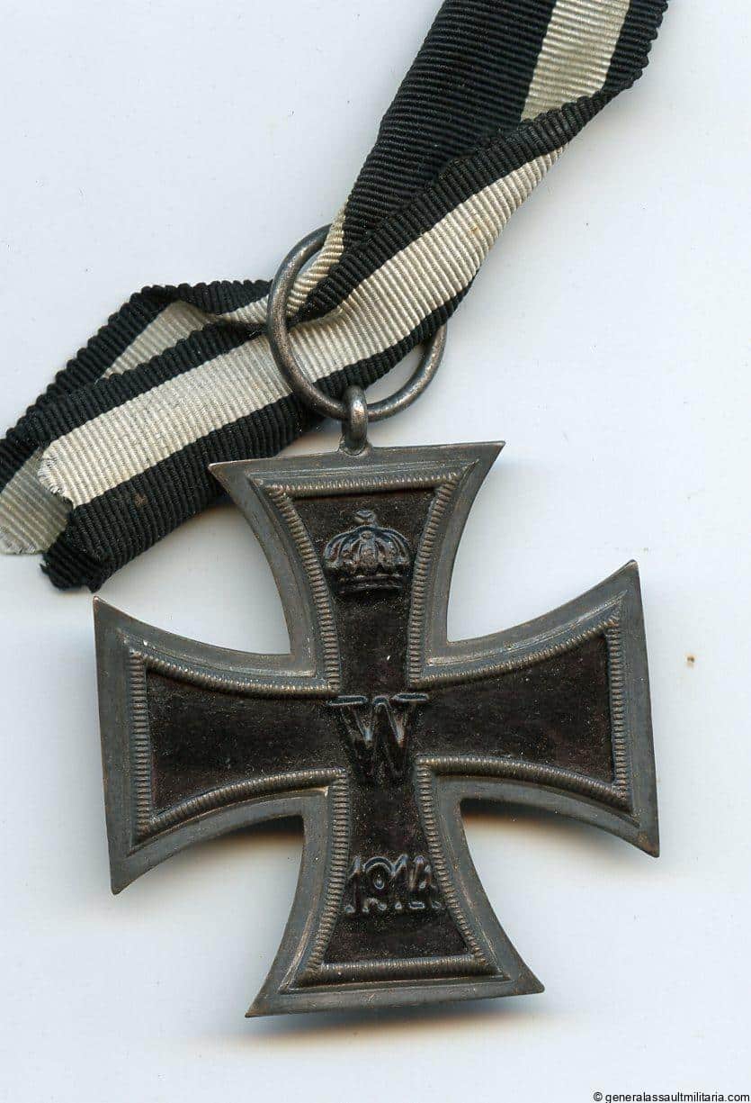 Iron cross 2nd class 1914 – K.O. Königliches Münzamt Orden, Berlin. Three piece construction cross with K.O. marked ring. Remains in good condition with a greyish silver patina on the frame and comes with a short ribbon.