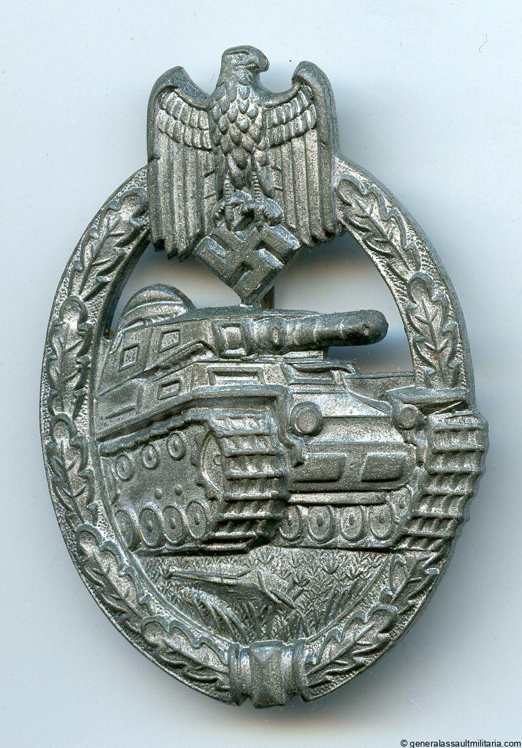 Panzer assault badge in silver – Friedrich Linden, Lüdenscheid. Mid to late war solid zinc PAB with FLL 43 makers mark. Soldered on setup with large base plate for the catch and sheet hinge. Remains in lightly worn condition with most of the finish still present. Typical Lüdenscheid design with sharp details. Well made badge of thick quality.