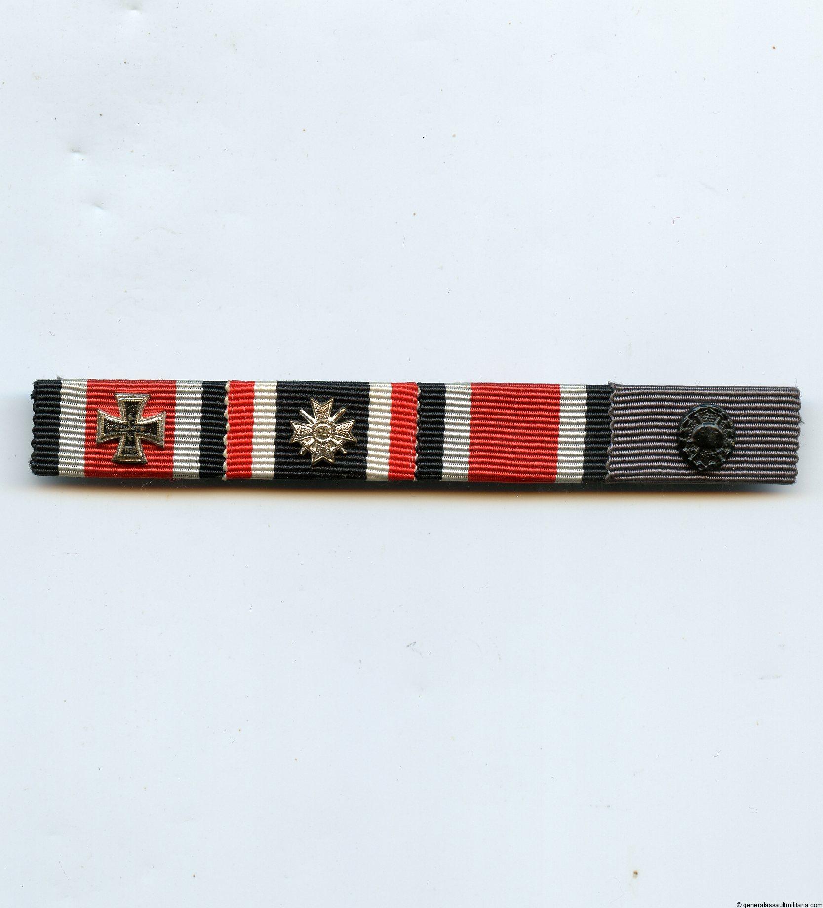 4 piece ribbon bar 1957 version. Wound badge in black with attachment, Ek2 ribbon, Ek1 ribbon with attachment and kvk2 with attachment. Remains in excellent condition.