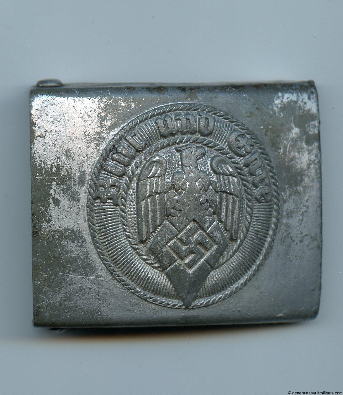 Hitler youth buckle – M4/38 Richard Sieper & Söhne, Lüdenscheid. Mid war zinc production with flat back Sieper design and mark. Remains in lightly worn condition with most of the silver finish still present. Uncommon mid war example.