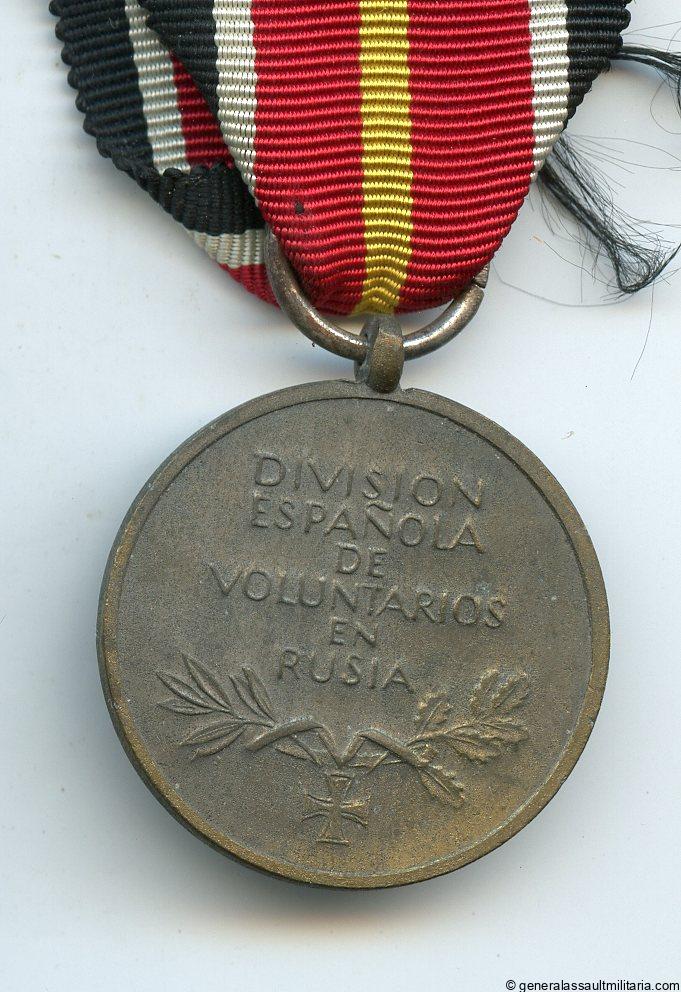 Blue division medal – Deschler & Sohn, München. Zinc medal with bronze finish and Deschler design. Remains in unissued condition and has most of the fragile bronze finish faded. Sought after medal with interesting connection to the Spanish blue division.