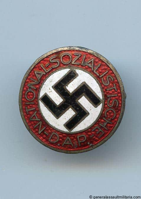 NSDAP party badge – RZM M1/95 Josef Feuss, München. Tombac pre war RZM party badge with RZM M1/95 party badge by Josef Feuss. Remains in good condition with patina on the silver plated parts and no damage to the enamel, just some scratches. More uncommon party badge.
