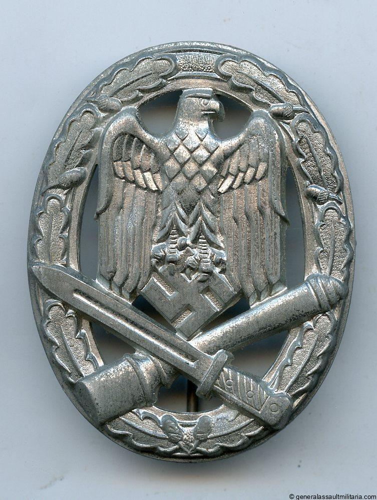 General assault badge – ‘Deep pan’ variant. Mid to late war solid zinc ‘Allgemeines Sturmabzeichen’ with unknown maker ‘Deep pan’ design. Remains in every good condition with a good part of the ‘Glanzverzinkt’ finish remaining and only minimal wear. Unique and interesting design with slightly vaulted appearance. Very good quality GAB!