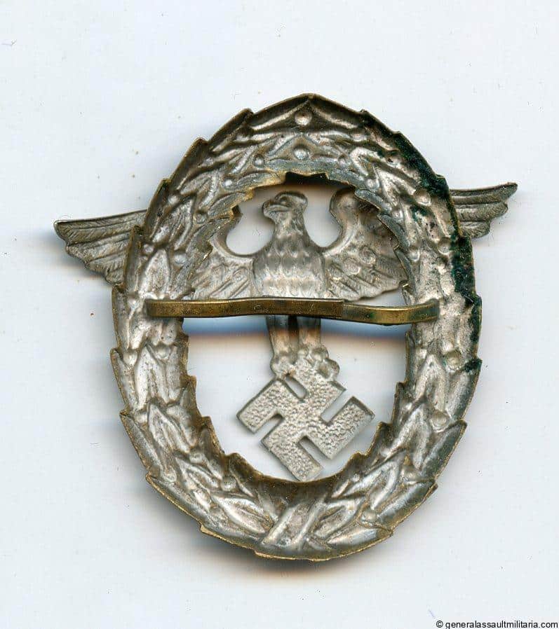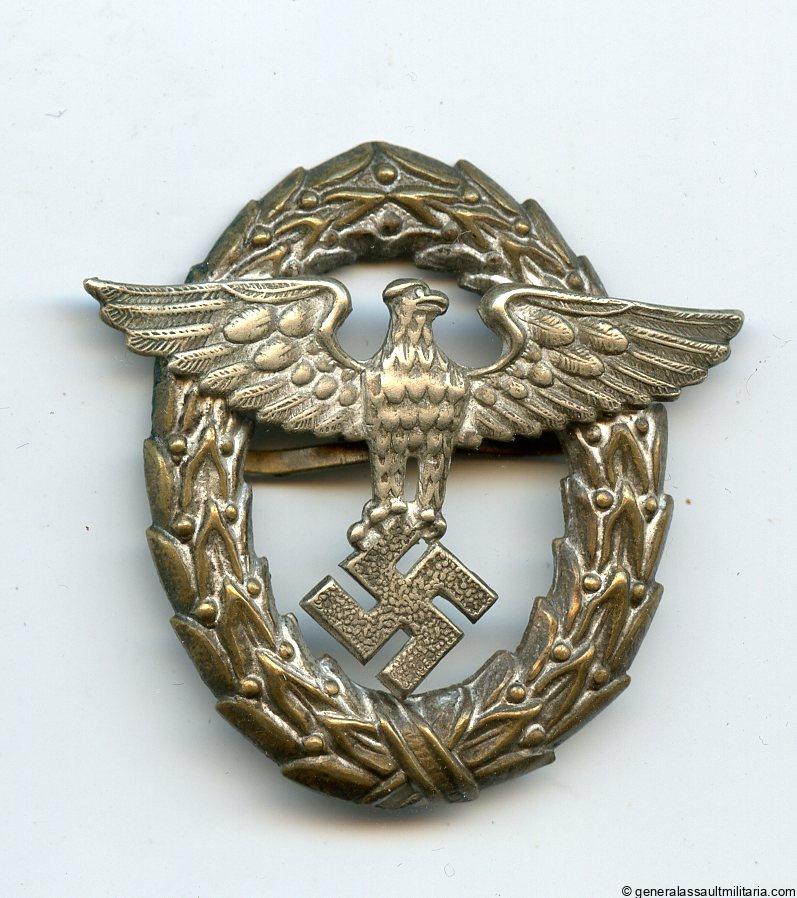Police cap badge 1st pattern. Early tombac wreath with nickel silver attached first pattern eagle. Remains in nicely worn condition with very sharp design and the prongs still intact.