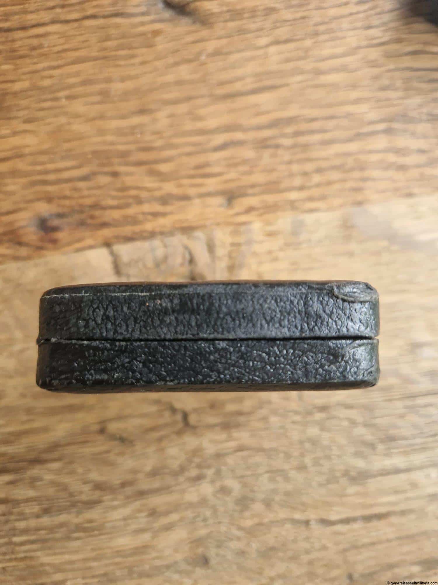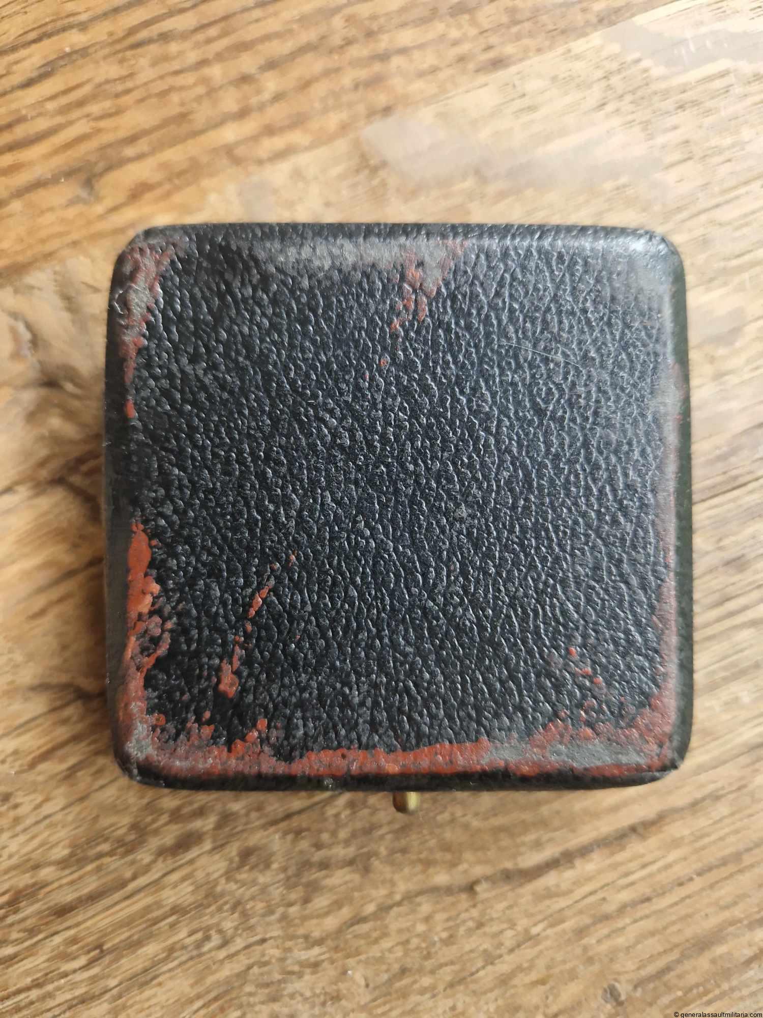 Iron cross 1st class cased – MM6 Fritz Zimmermann, Stuttgart. Three piece construction cross with Zimmermann frame, core and PkZ mark 6 on the pin. Remains in excellent unworn condition with near perfect finish and frosting remaining. Comes with matching dome shaped case in good condition, shows some red residue on the bottom and a small tent on one corner. Very nice set with a bit more uncommon Zimmermann cross.