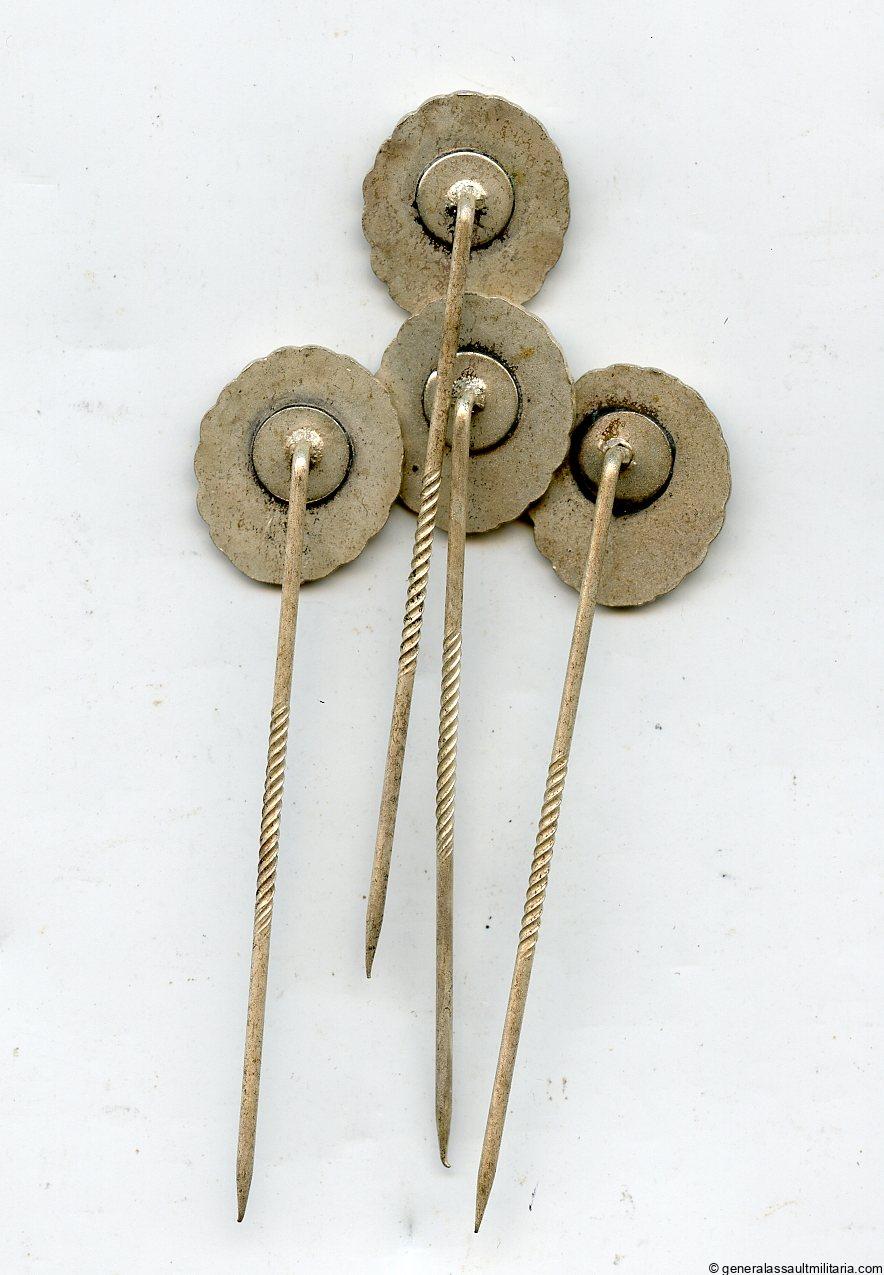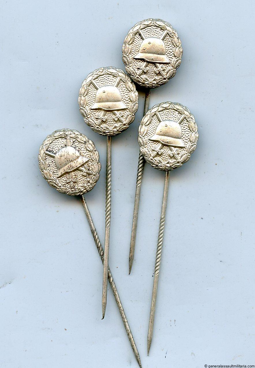 Wound badge in silver 1918 16mm stickpin. Tombac construction with backplate pin setup and silver finish. All 4 remain in excellent condition and came from a jewelry shop hoard find. Most likely made by S&L.