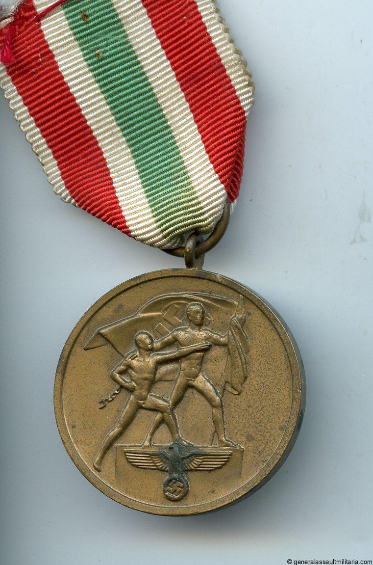 Memel annexation medal – Hauptmünzamt, Wien. Early war tombac medal for the Memel annexation. Tilted G variant with very small HC mark on the leaves on the reverse. More uncommon variant with just a bit of patina and a small ribbon.