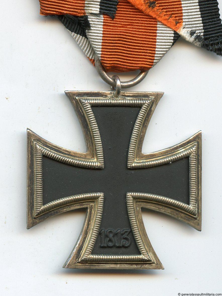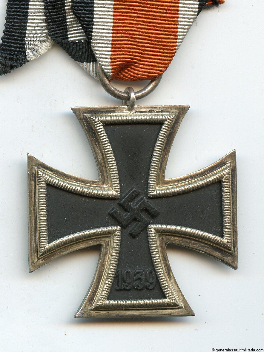Iron cross 2nd class – Otto Schickle, Pforzheim (zinc core). Early ear three piece construction cross with Schickle design frame and more uncommon zinc core. Remains in perfect condition with minimal patina on the frame and perfect black core. Comes with long orange ribbon. Top cross.