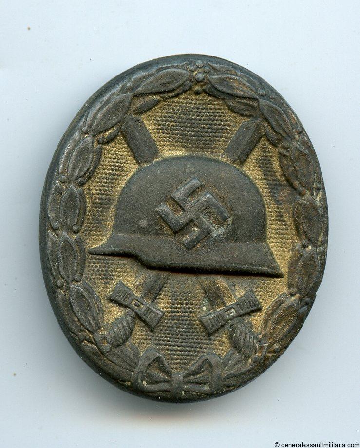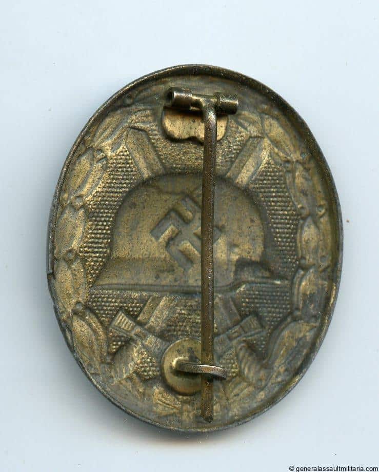 Wound badge in gold – Deschler/Wiedmann ‘Übergrosse’. Mid war hollow over sized variant attributed to Deschler and Wiedmann. Very rare gold variant that was finished with gold finish against the regulations. Only a few examples have been found. This one remains in well worn condition with some finish on the front and fairly well preserved finish on the reverse.