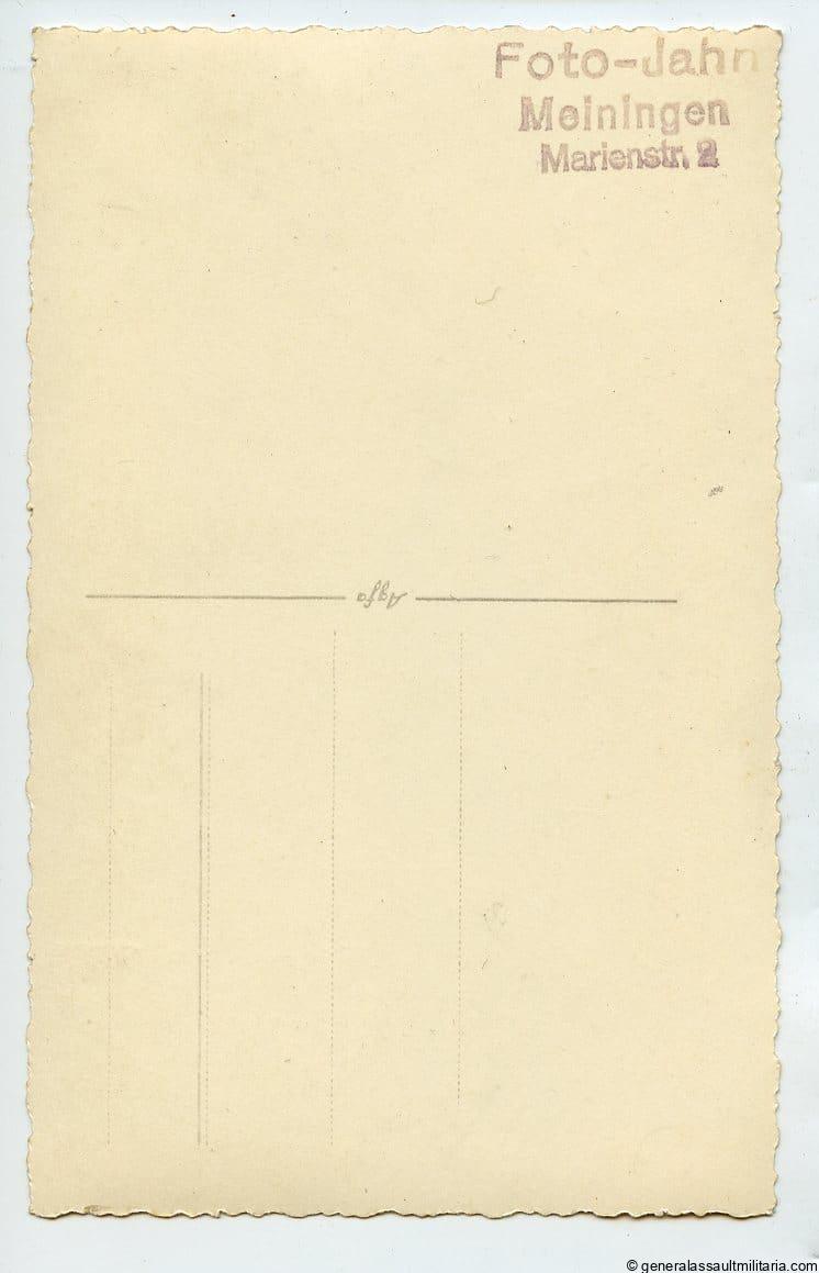 LAH SS-Untersharführer Panzer portrait with Ek2, Ost medal ribbon, silver PAB, flat wire sleeve eagle and LAH slip ons in wear. Very good looking SS Leibstandarte Adolf Hitler portrait with SS style panzer wrap and LAH straps. Mid to late war portrait that was produced on Agfa portrait paper. Very difficult to find!