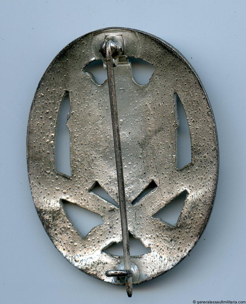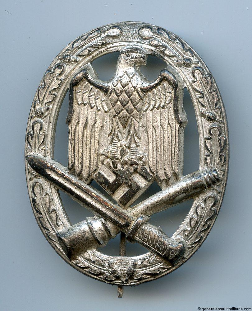 General assault badge – Rudolf Karneth, Gablonz. Mid to late war semi hollow zinc construction RK design GAB with crimped in ball hinge setup. Remains in unworn condition with near perfect finish. Very good looking example with the bright silver plated finish and polished highlights.