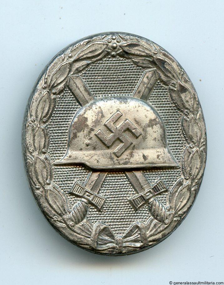Wound badge in silver – Deschler/Wiedmann “Übergrosse”. Early war tombac wound badge with silver plated finish and excellent preserved protective finish. Remains in unworn too very lightly worn condition. Excellent example with a variant setup up that is seldom seen and this example was most likely made by Wiedmann.