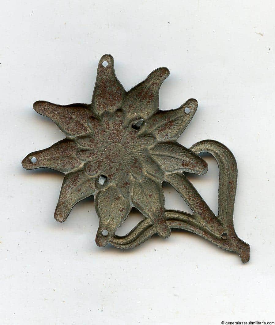 Edelweiss cap badge – Förster & Barth, Pforzheim. Steel construction cap badge with F&B mark. Unworn condition without finish and some slight surface rust.