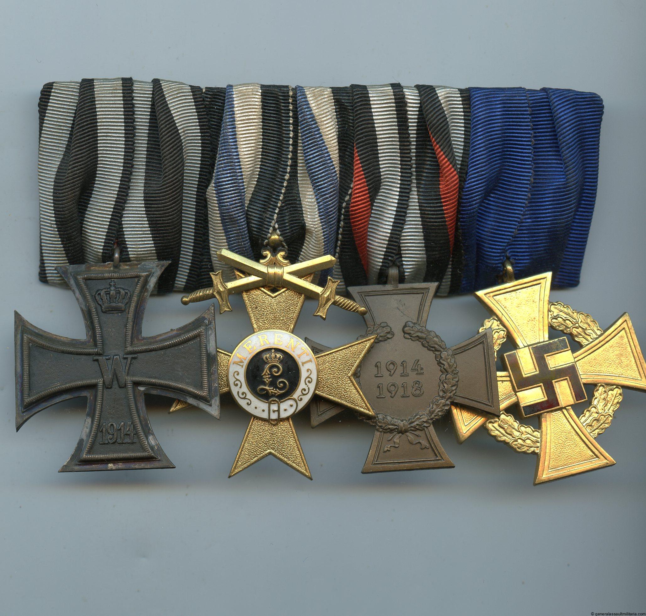 4 piece medal bar with Bavarian merit cross 1st class with swords