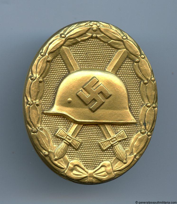 Wound badge in gold – Hauptmünzamt Wien. Early war tombac example without PkZ mark but clearly made Hauptmünzamt example. Remains in perfect mint condition with full gilding present. Top high quality wound badge.