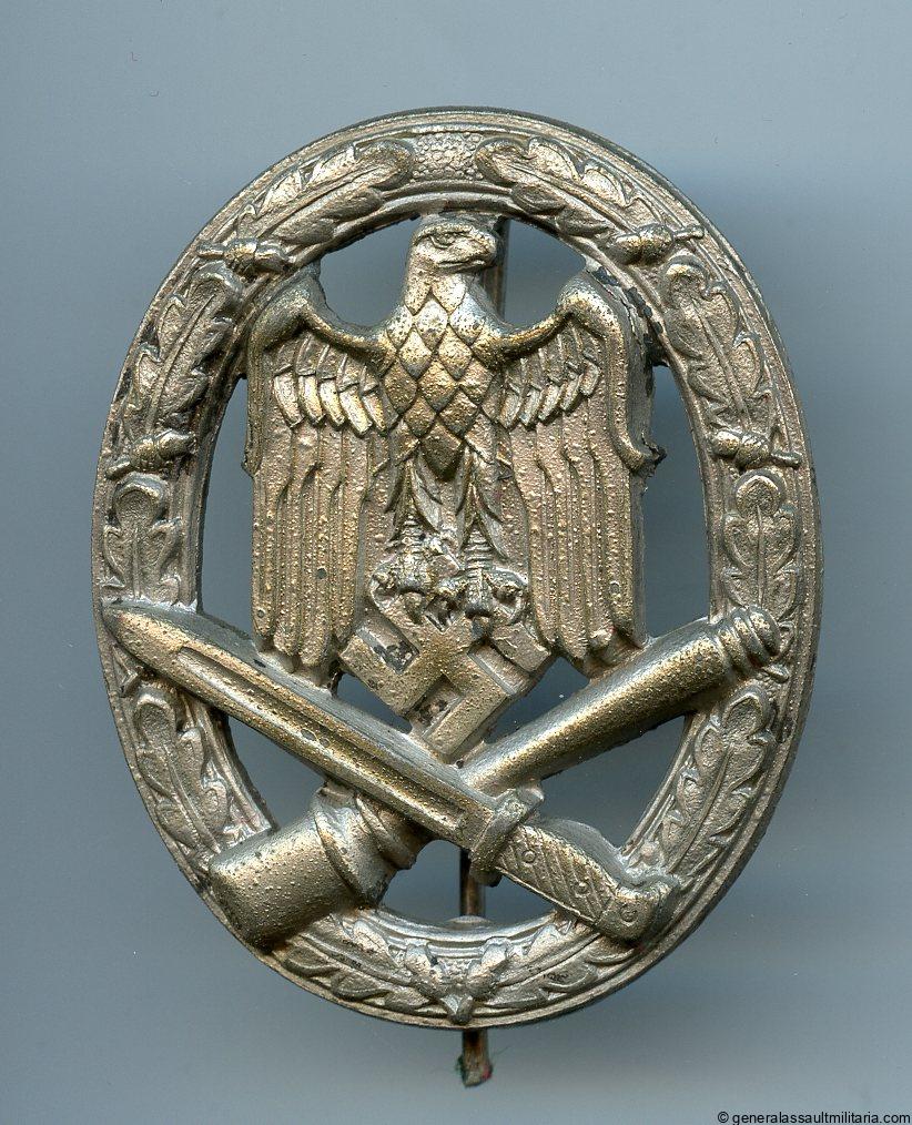 General assault badge – C.E. Juncker, Berlin. Early war hollow zinc GAB with copper coated surface and silver plated finish on top. Remains in mint unworn condition with all the finish still intact. Very difficult badge to find in this condition.