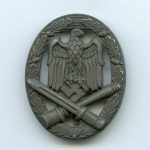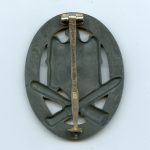 General assault badge – L/21 Förster & Barth, Pforzheim. Semi hollow Vienna design GAB with wide pin style F&B setup. Nicely marked on the pin with F&Bs Ldo mark. Remains in slightly worn condition and has the finish faded, giving it a dark appearance. Well made and very uncommon ‘Allgemeines sturmabzeichen’ without damage or repairs. These L/21 only appear on the market every once in a while.