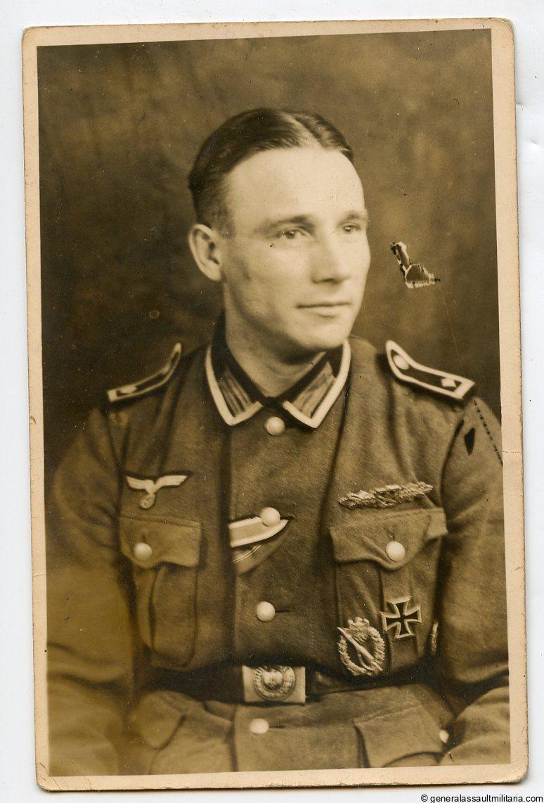 Heer CCC portrait. EK2 and ost ribbon, IAB, EK1, WB and bronze CCC in wear. Remains in good condition with some normal wear, shows some damage that was present in the negative when produced and slight fading from light exposure. Postcard size, unmarked period photo paper. Excellent portrait even in this condition.