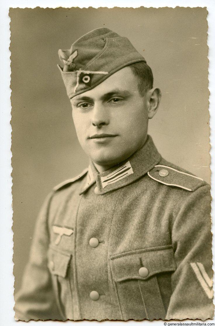Infantry portrait taken in Belgium. Very sharp and good quality portrait, postcard size, kompanie 13 buttons on the boards, unmarked photo paper and with Belgium Atelier stamp on the reverse.