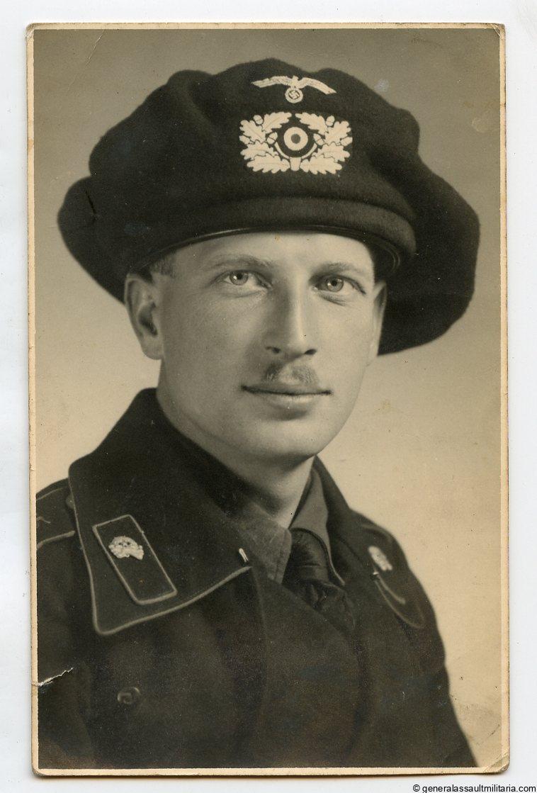 Heer Panzer portrait with Beret in wear. Stunning sharp portrait with the Panzer beret and early piped wrapper in wear. Remains in very good condition with some wear and a bit of damage on the right. Postcard size, Agfa portrait paper, named Gerhard and with atelier stamp on the reverse.