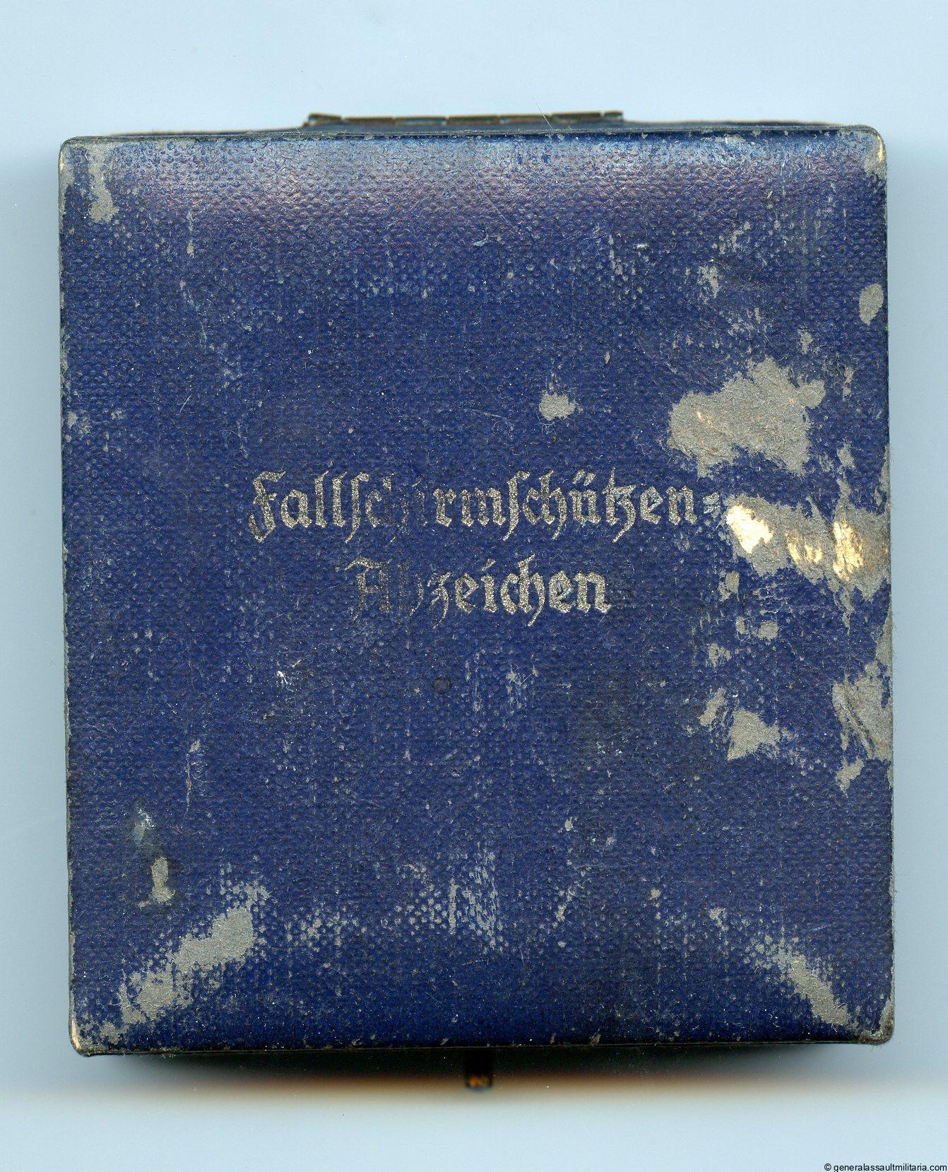 Luftwaffe paratrooper badge case. Early to mid war case for a tombac paratrooper badge. Remains in good condition with some wear to the outside, mainly the edges and front. Hinge and inside still in excellent condition. Fits the Assmann ‘Fallschirmschützenabzeichen’ well + a few more makers and variants.