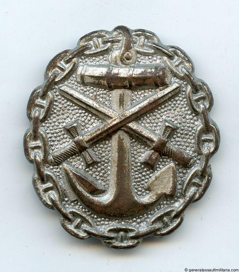 Wound badge in silver Marine. Imperial Kriegsmarine design wound badge made from steel with ‘Brennlack’ silver finish. Remains in lightly worn condition with nearly all the finish present. Good looking example with some good wear and light rust to the worn parts. Very uncommon silver grade!