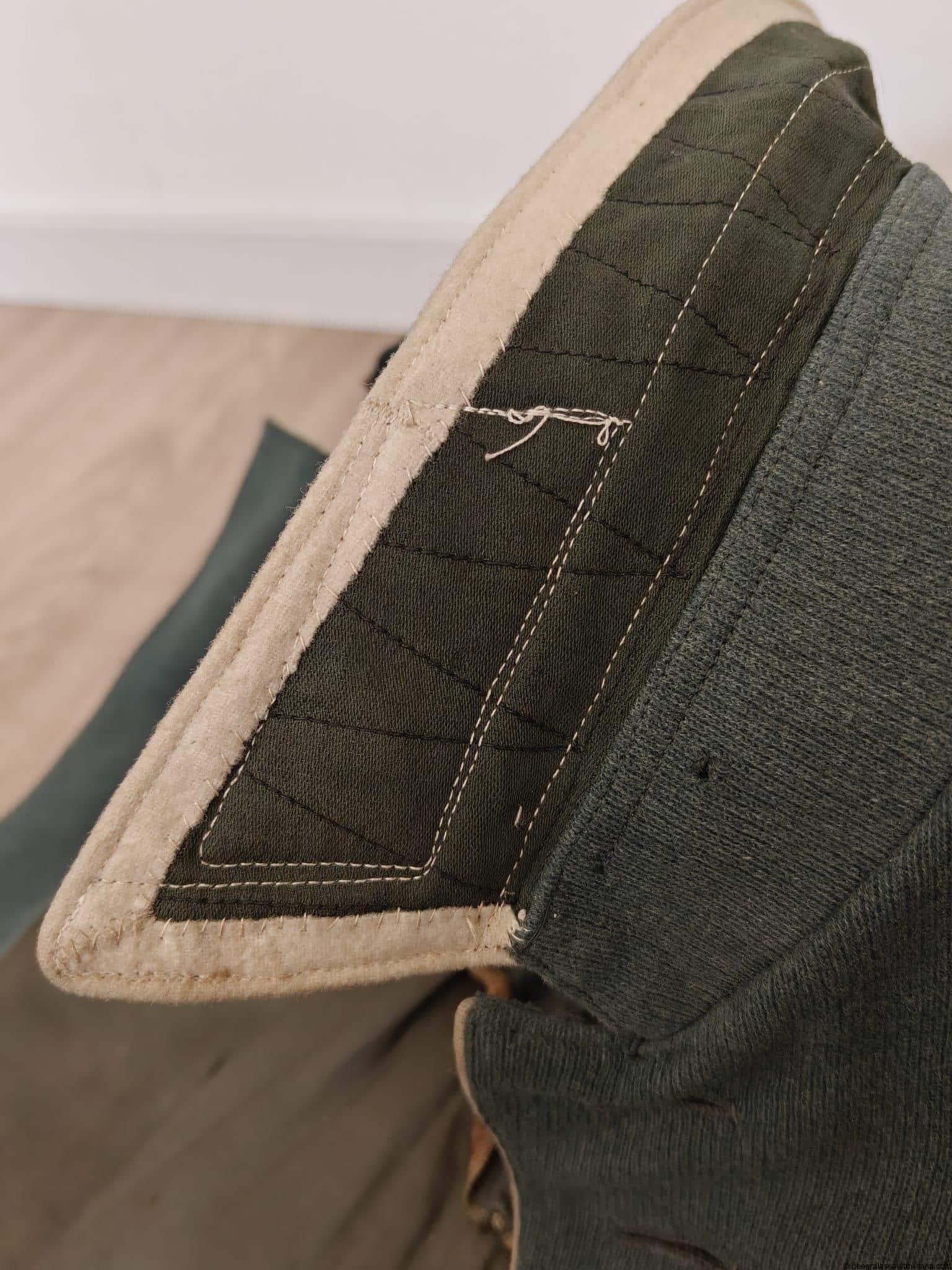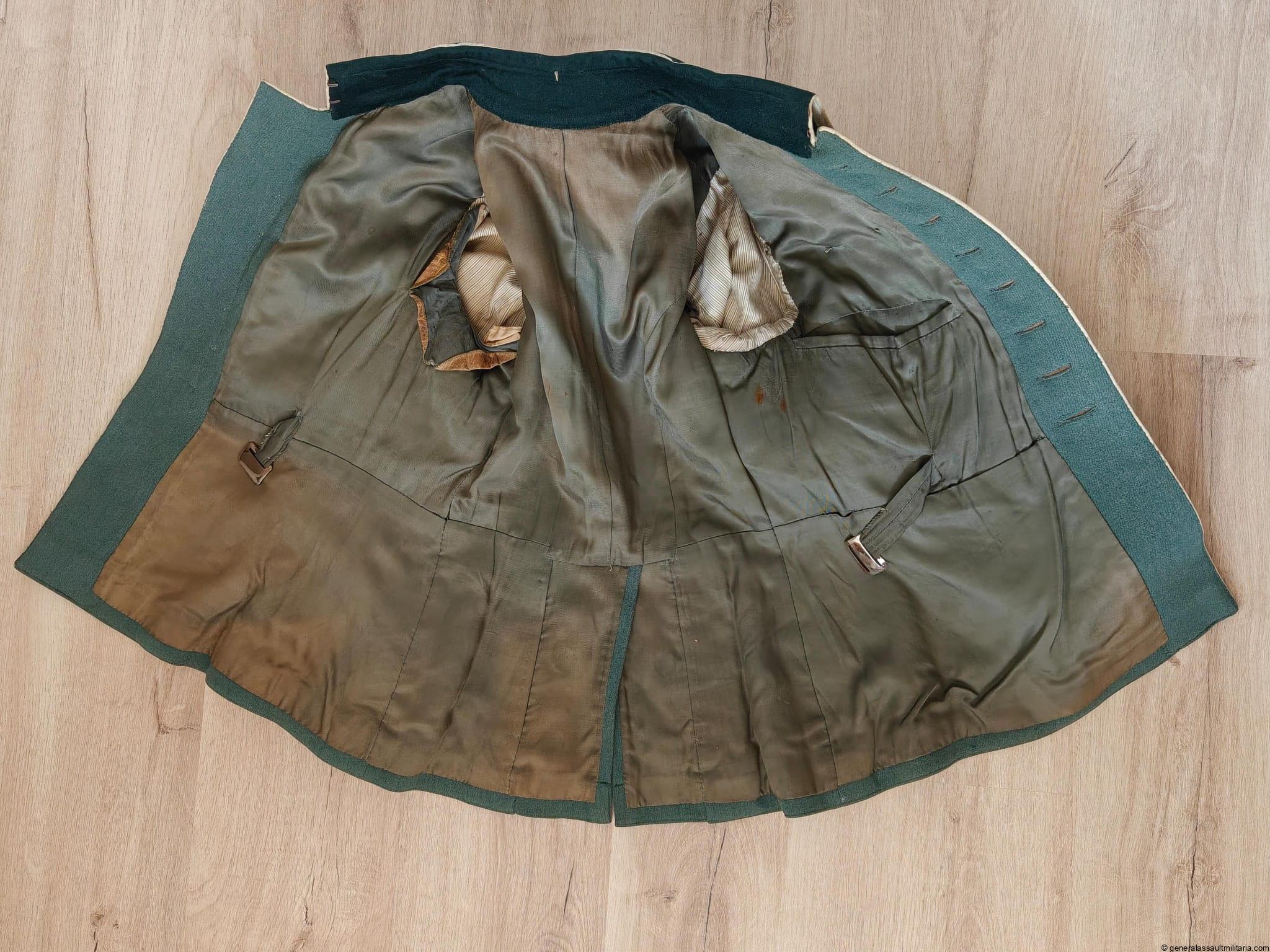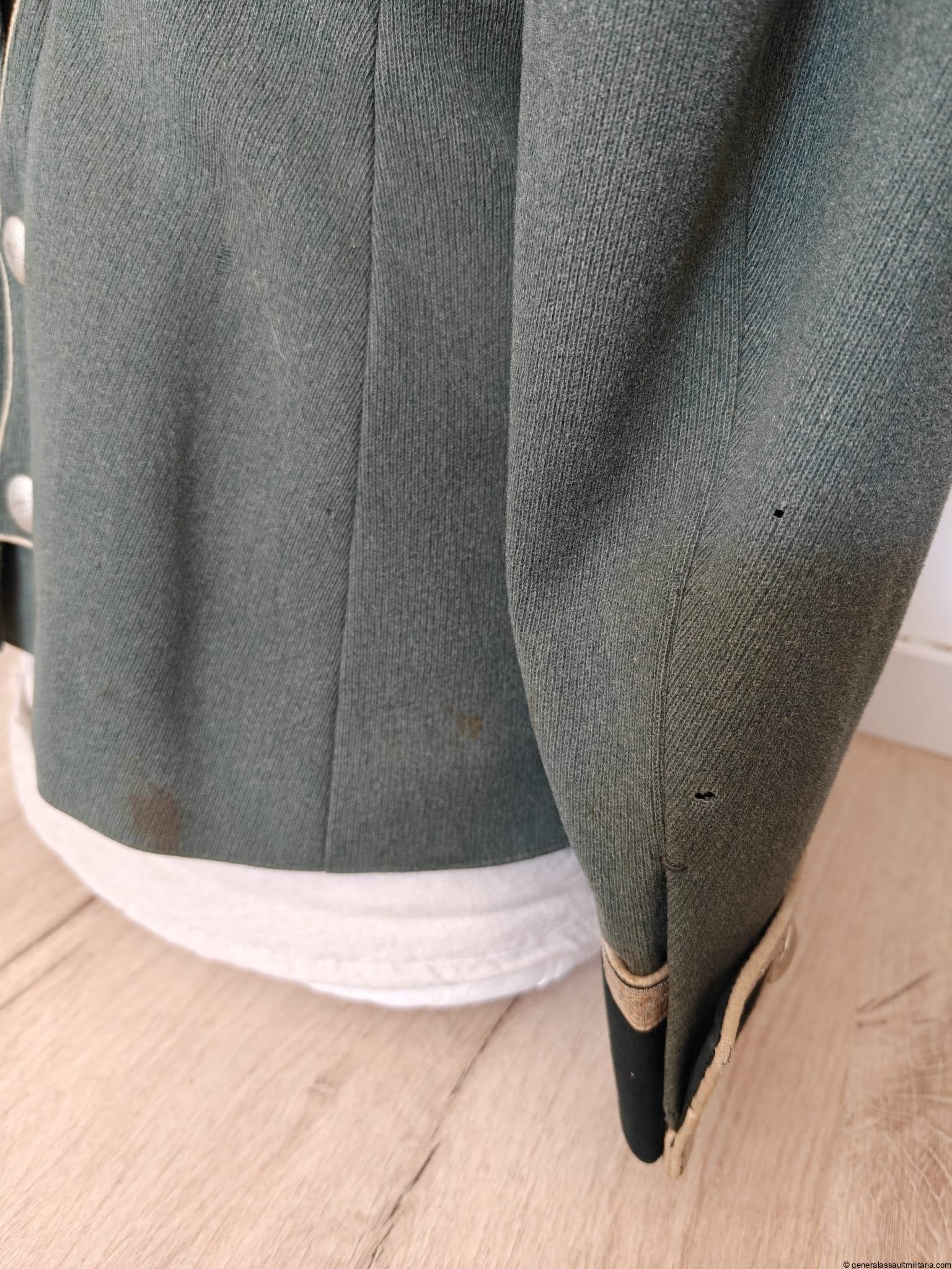 Infantry NCO waffenrock/ parade tunic to an Unteroffizier of Infanterie regiment 20. The tunic is in used condition; has different mothnips and stains (see pictures). Still a nice piece with character and medal loops for a ribbon bar and badge!