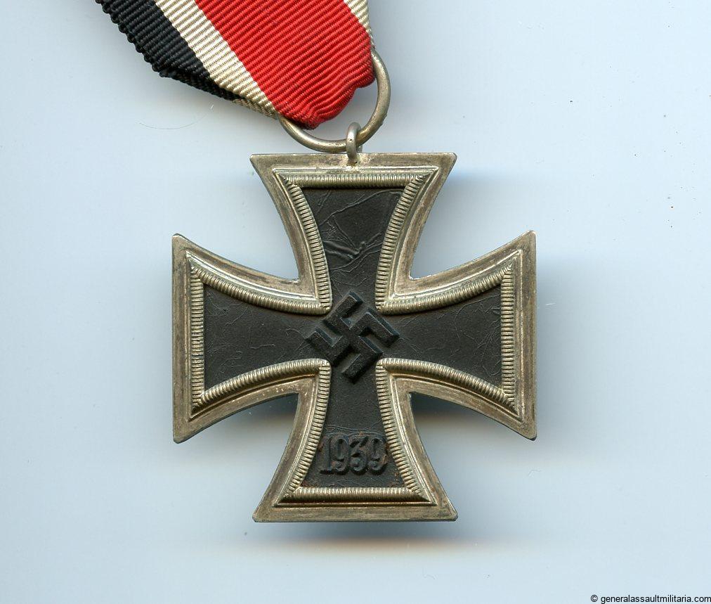 Iron cross second class – UM52 Gottlieb & Wagner, Idar-Oberstein. Three piece construction ek2 with iron core. Some cracks in the paint and a slightly yellow patinated look. Comes with the attached 12-15 cm ribbon.
