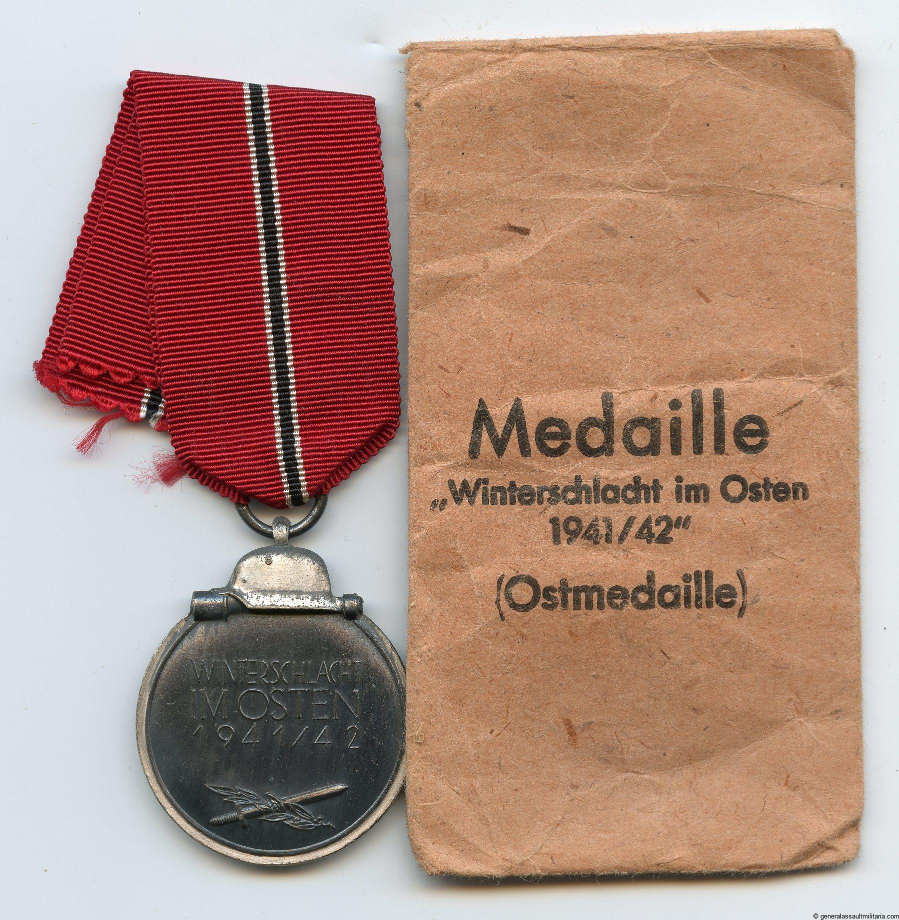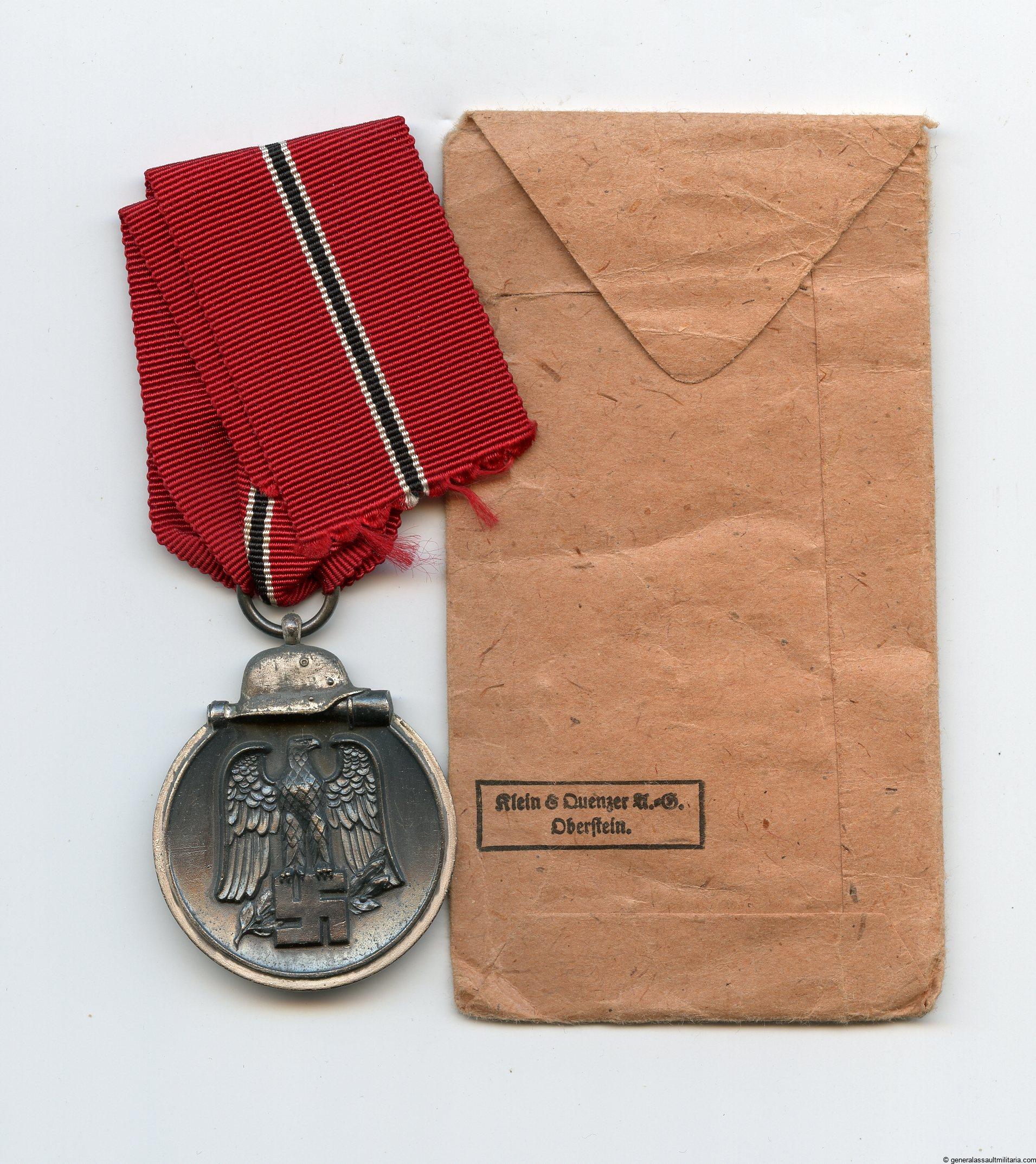 Ost medal + packet MM65 – Klein & Quenzer, Idar Oberstein. Zink Ost medal with most of the finish remaining and 15cm+ size ribbon, maker marked 65 in the ring. Comes with matching K&Q packet that remains in good condition with minor signs of wear on the edges.