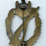 Infantry assault badge in bronze – Rudolf karneth, Gablonz. Zinc IAB with crimped catch and hinge and bright bronze finish. Remains in worn condition and has kept the bronze finish well. Good looking bronze IAB with a proper worn look.