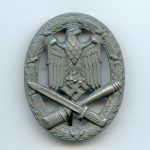 Generall assault badge produced by a still unknown maker. Slightly worn zink badge with faded finish. Good looking general assault badge in good condition, without damage or repairs. Recent finds have linked Funke & Brüninghaus to this design as possible manufacturer.