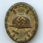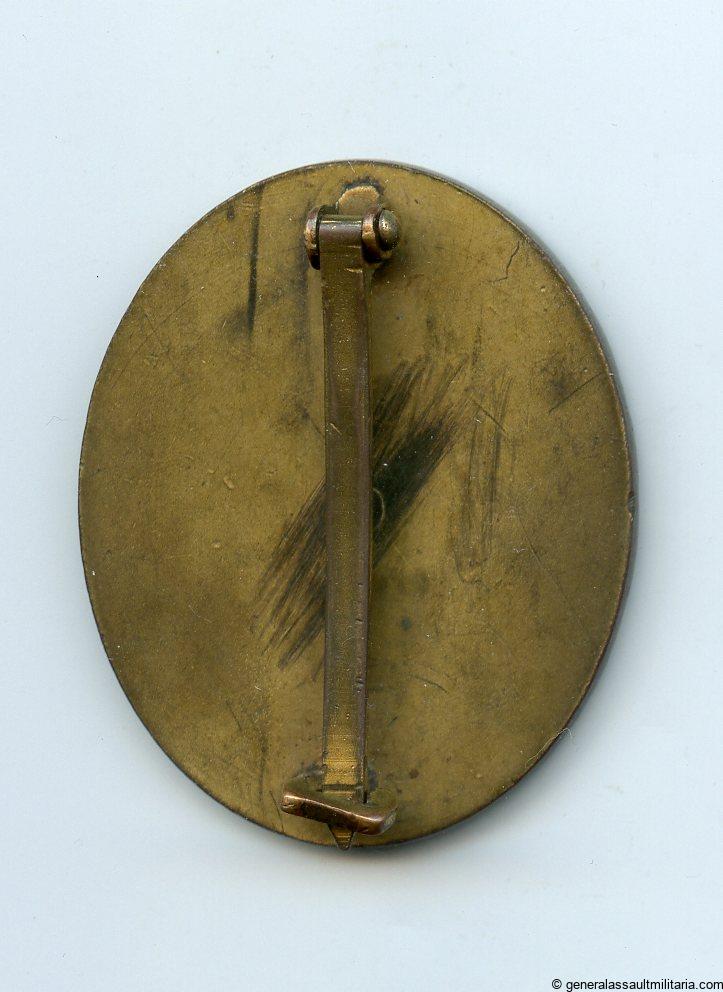 Wound badge in gold – Haupmünzamt, Wien. Early tombac VWA with makers mark 30 and wide pin setup. Remains in well worn condition and shows a beautiful dark red patina on the worn areas. Rarely found this well worn and is a perfect example for on a combat tunic. Shows about half of the gold finish still present. Quality wound badge that I have had in the collection for some time.