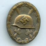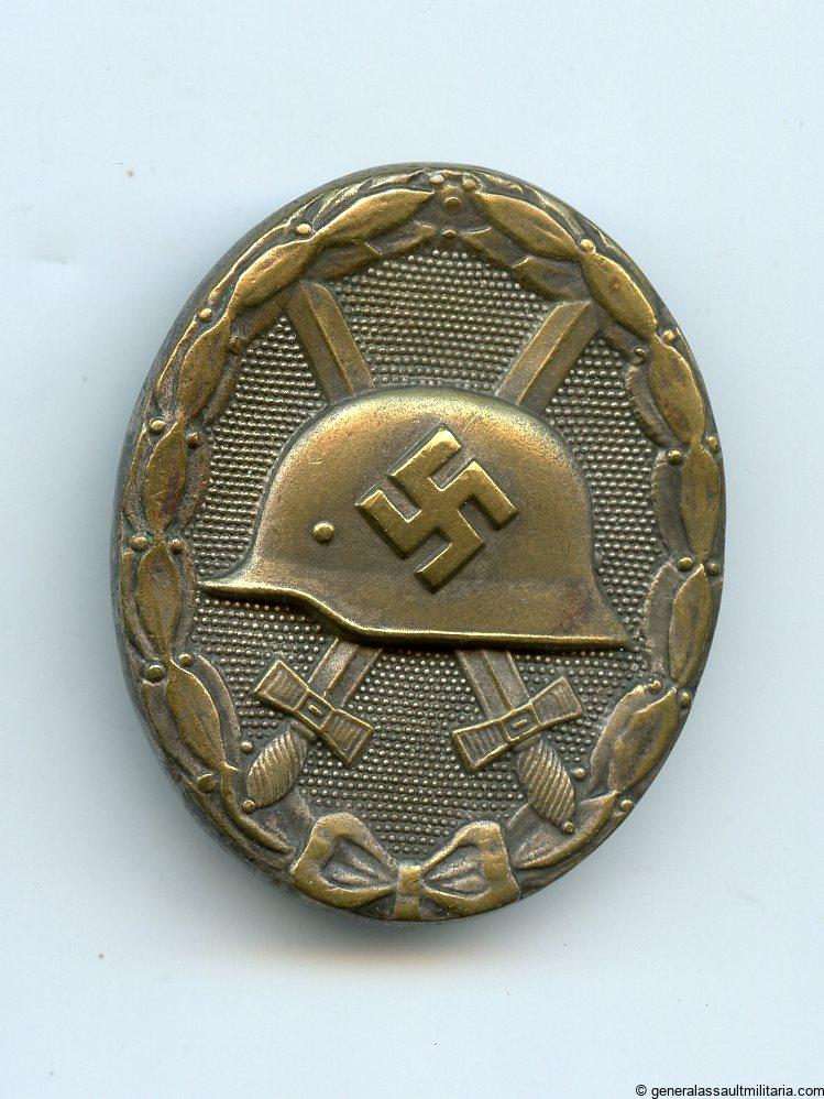 Wound badge in silver – Grossmann & Co, Wien. Early to mid war solid tombac VWA with 11 PkZ mark under the catch. Remains in worn condition with a good part of the silver plating worn down on the front. Slightly more uncommon marked wound badge.