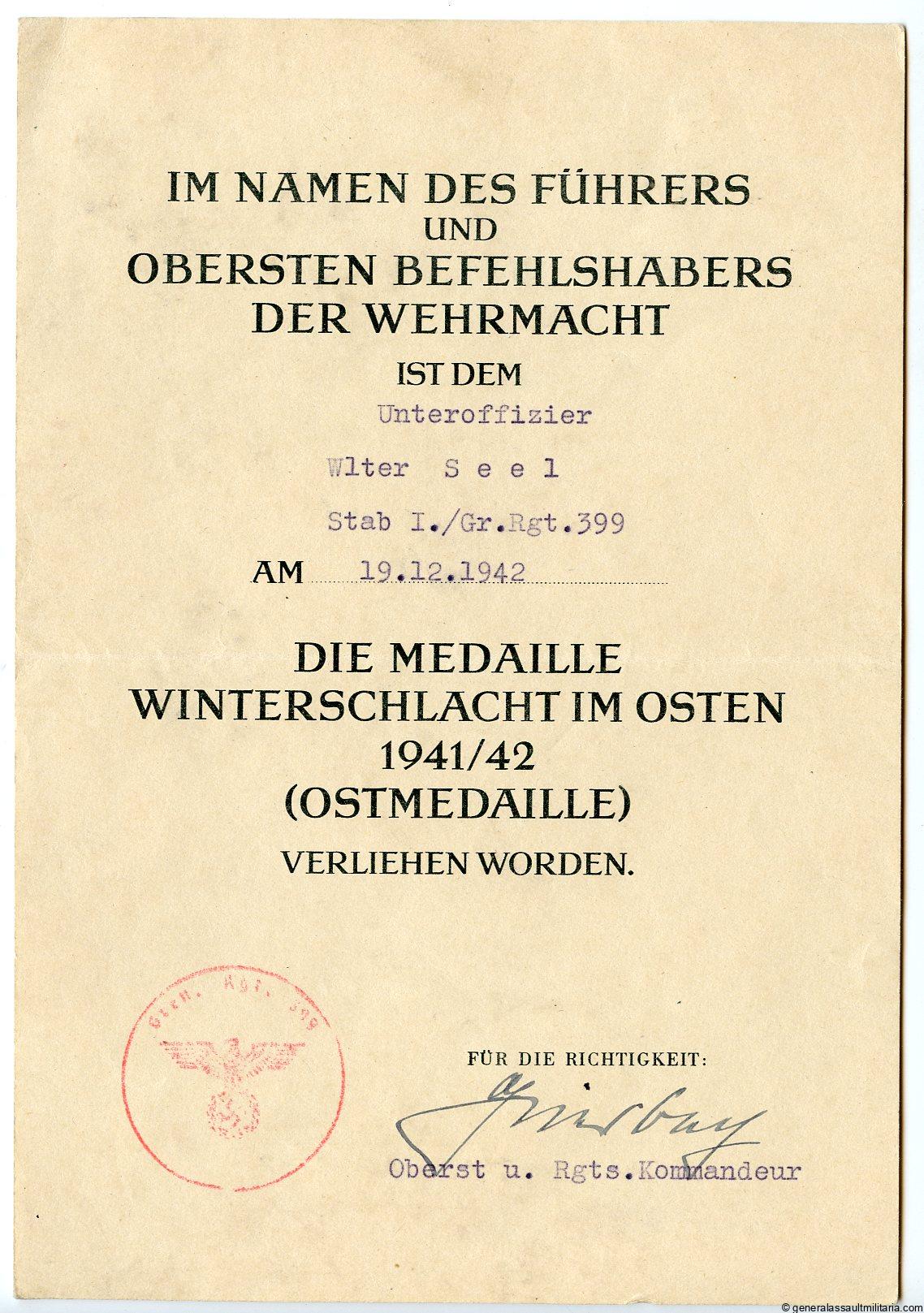 SOLD OUTEk2 award certificate Grenadier Regiment 114