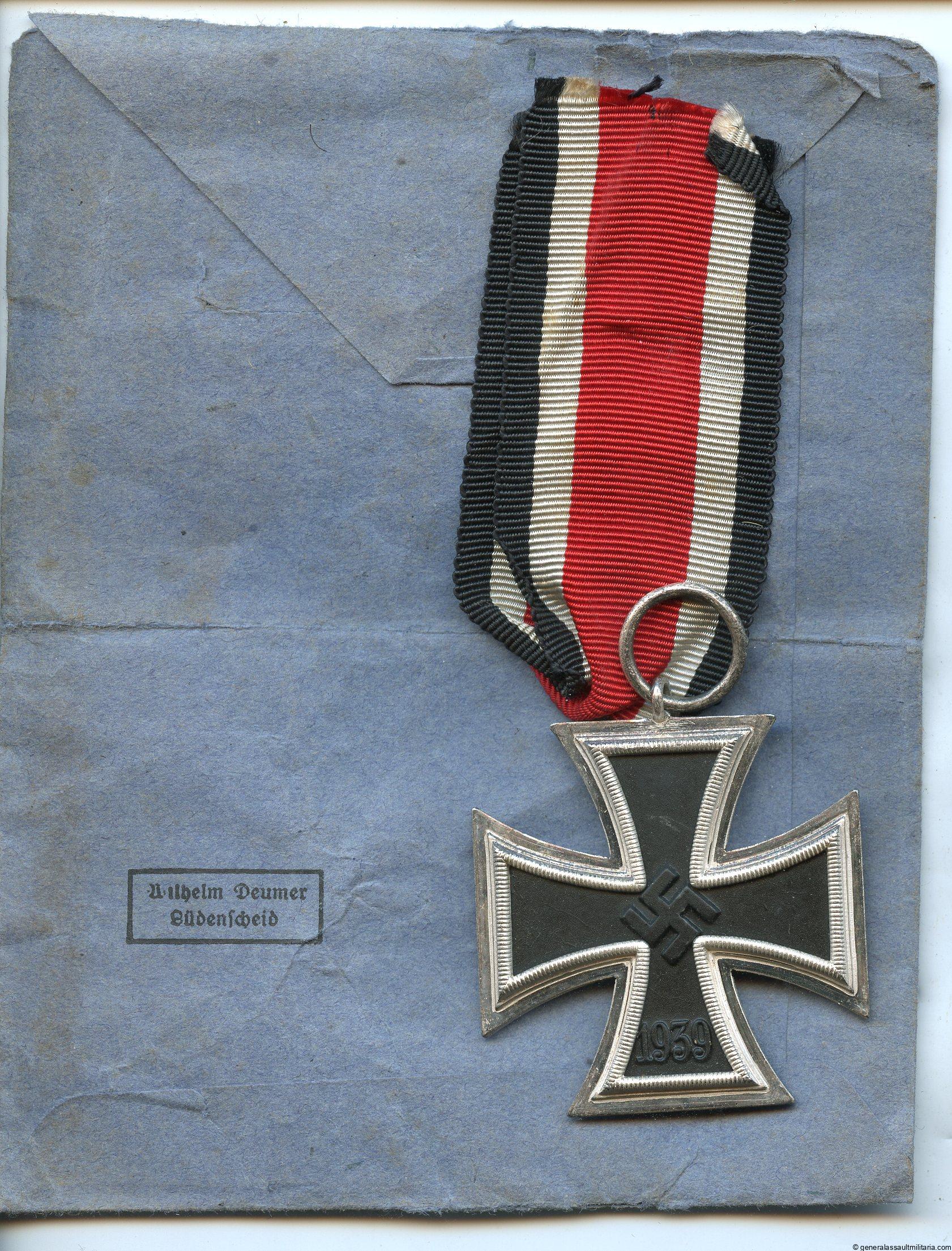SOLD OUTIron cross 2nd class + packet – MM3 Wilhelm Deumer, Lüdenscheid