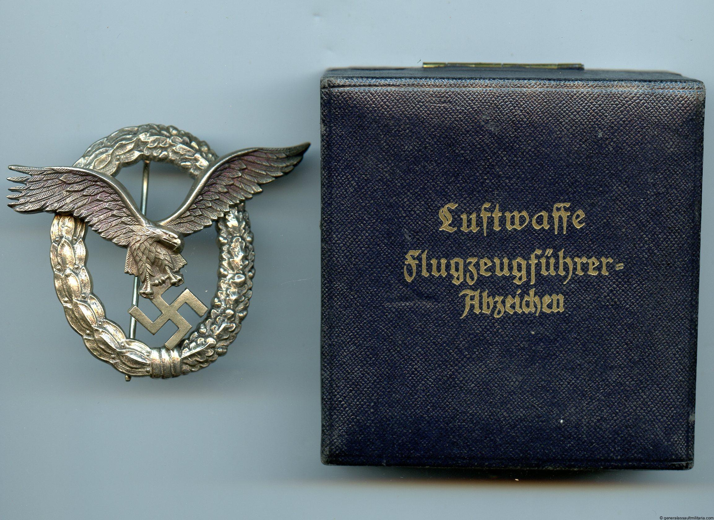 SOLD OUTLuftwaffe pilots badge in case – Friedrich Linden, Lüdenscheid