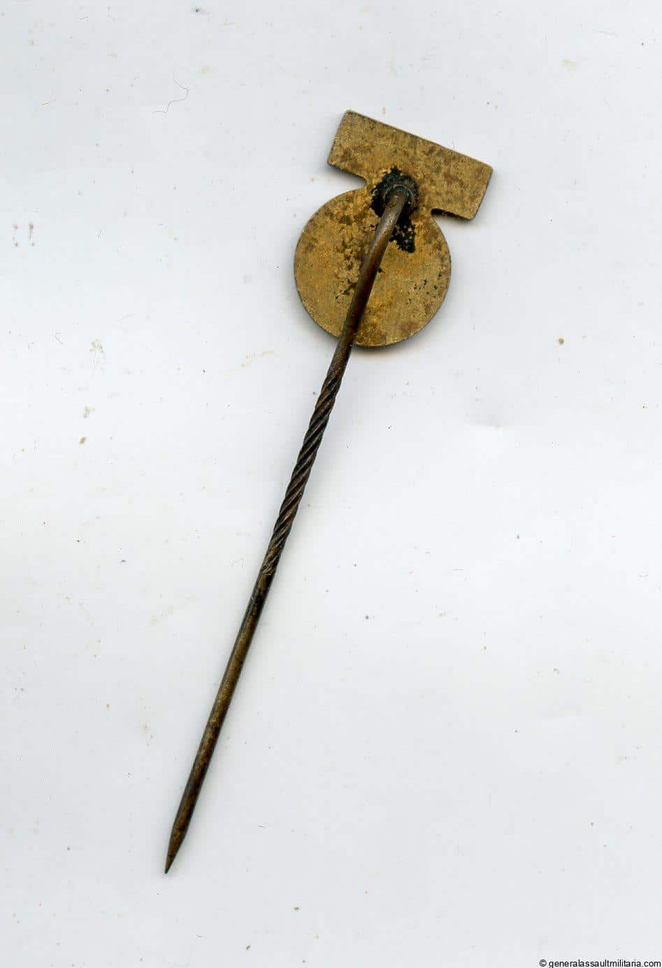 16mm Sudetenland with Pragerburg bar stickpin. Very interesting and rare stickpin with both Sudetenland annexation awards. Remains in good condition with some patina and age to it, made from tombac with a directly soldered pin. Only the 1st time we had such a stickpin on offer. Great piece!
