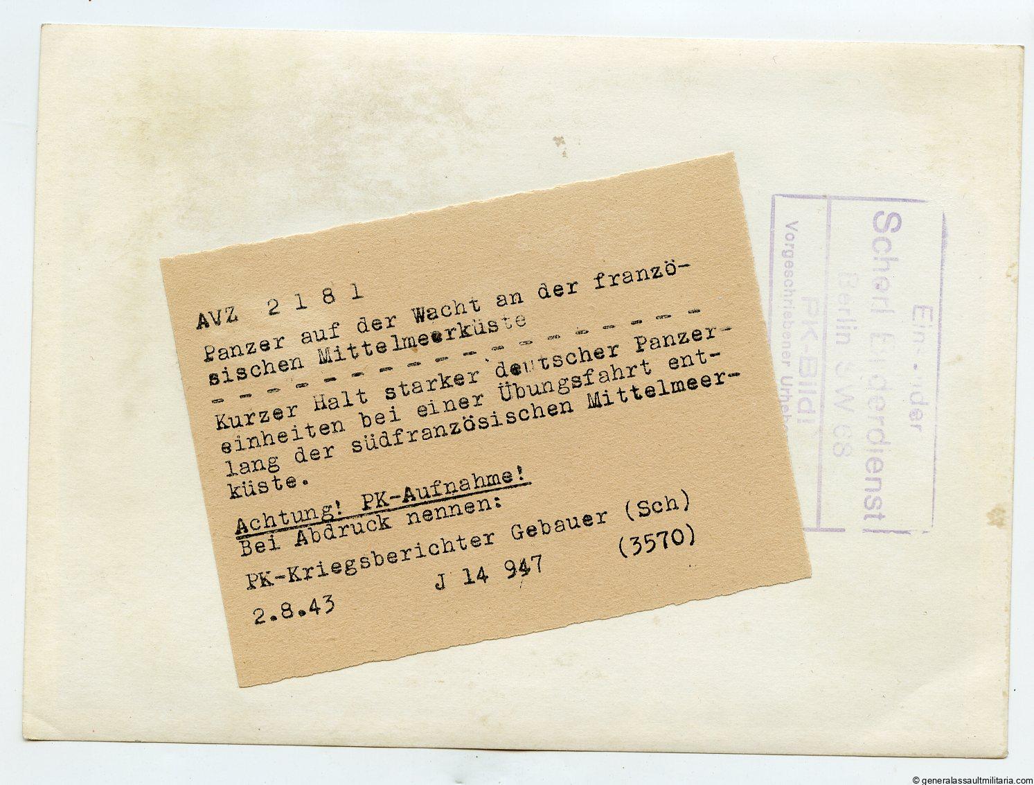 17x12cm press photo of tanks in training on the south French coast in August 1943. Remains in perfect condition with the original tag still attached on the back. Excellent mid war picture.