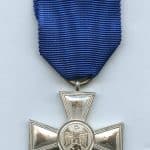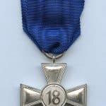 18 year loyal service medal with Heer attachment eagle. Steel construction medal with plated finish and a very bright appearance. Shows only light wear to the higher parts on the front. Top example that was intended for Army personnel.