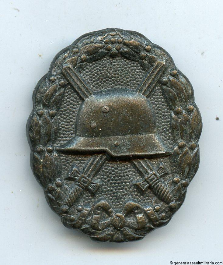 1918 wound badge in black – Godet & Co, Berlin. Steel construction wound badge with the large Godet design. Remains in worn condition with some of the bluing worn down. Very sought after variant and uncommon variant!