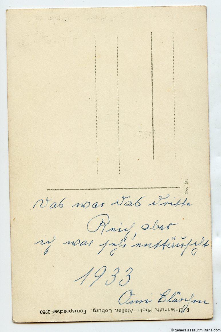 1933 portrait with SA,HJ and NSFS members from the same family portraying with is swastika flag on the background. Very rare portrait to see done this way as professional studio portrait. Atelier stamp on the reverse. Top portrait!